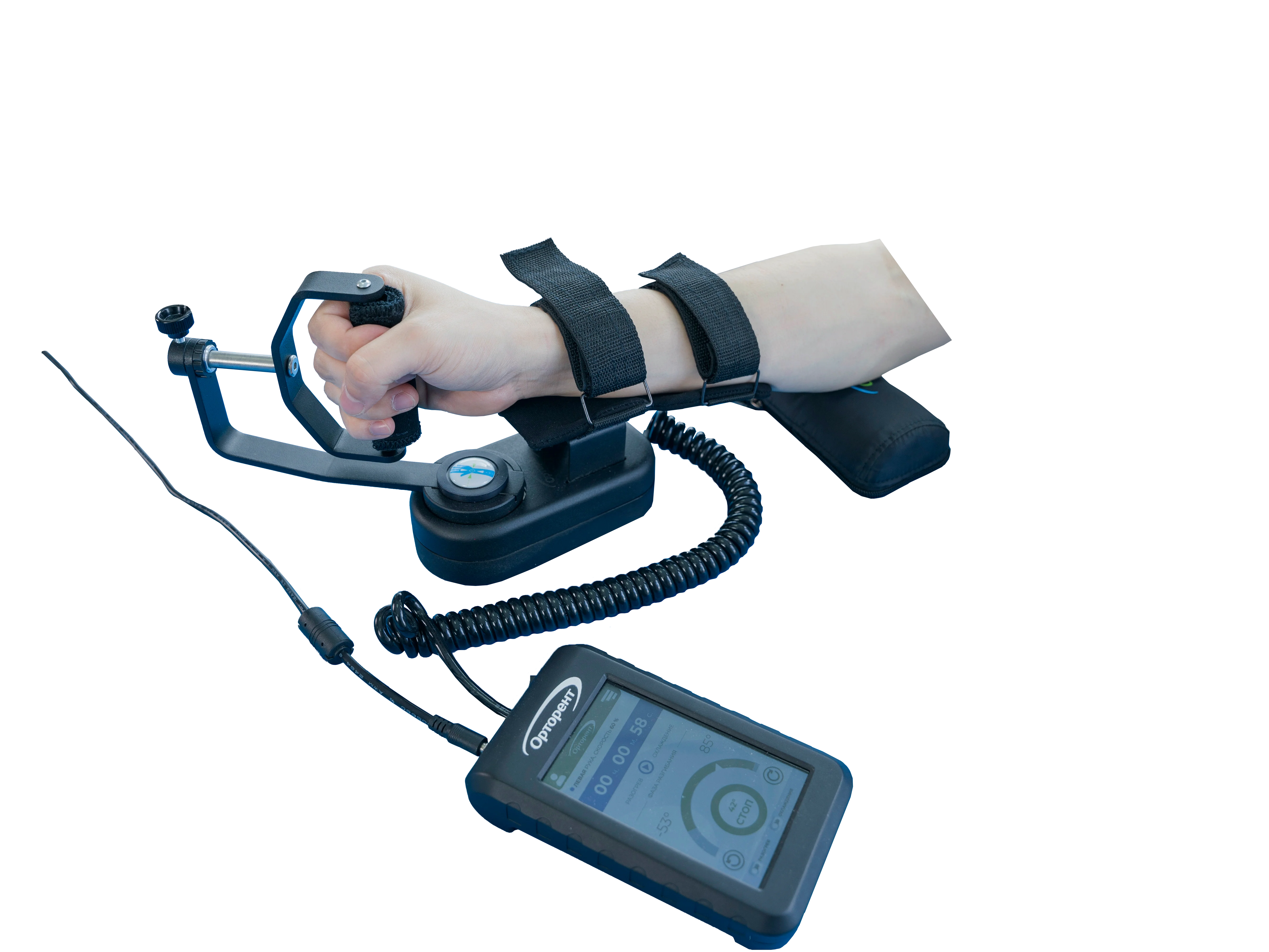 Аппарат «Орторент-лучезапястный» предназначен для непрерывной пассивной разработки (CPM-терапии) лучезапястного сустава. Устройство обеспечивает циклические движения сгибания-разгибания и пронации-супинации (ротации) кисти в заданном диапазоне амплитуды. Переключение между режимами движения осуществляется с пульта управления. Анатомическая конструкция крепления обеспечивает правильное положение конечности во время процедуры. Электропривод перемещает кисть по физиологической траектории без усилий со стороны пациента.